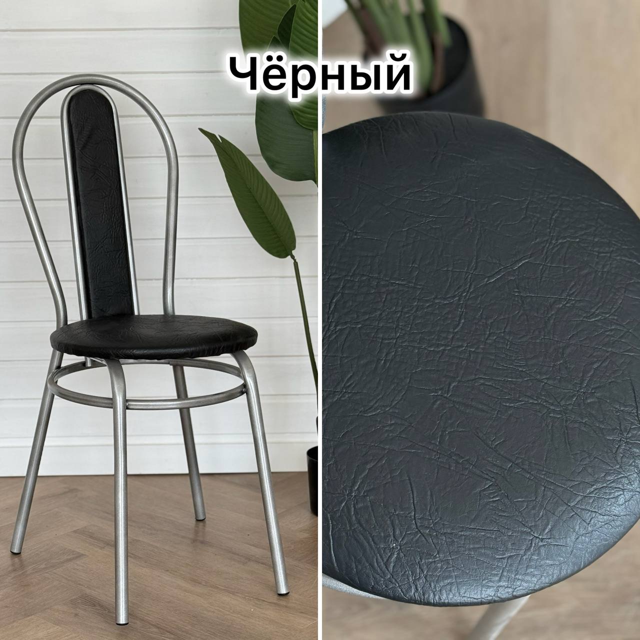 Крепкий и надёжный стул цвет черный на сером каркасе