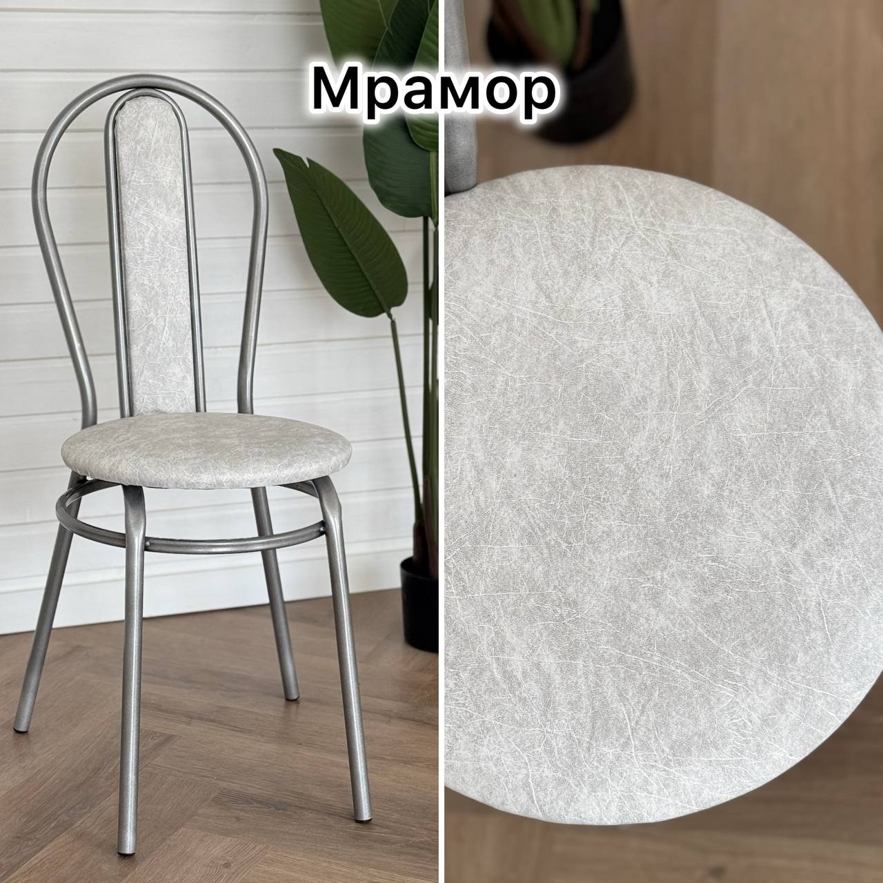 Крепкий и надёжный стул цвет мрамор на сером каркасе