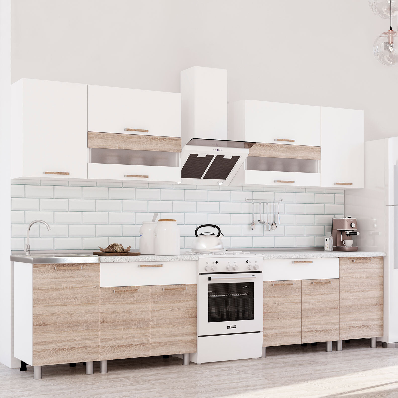 Стильная современная кухня «Айсбери» 2,4 м пропитана атмосферой душевного тепла и солнечного света. Классическое сочетание белого цвета с древесной фактурой - лучшее решение для Вашей кухни!