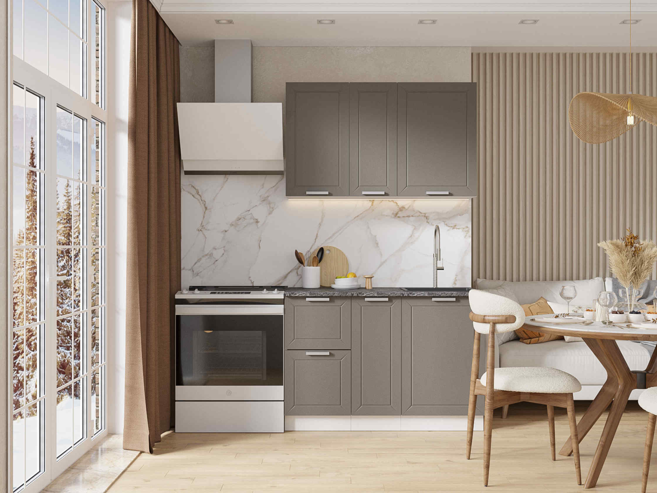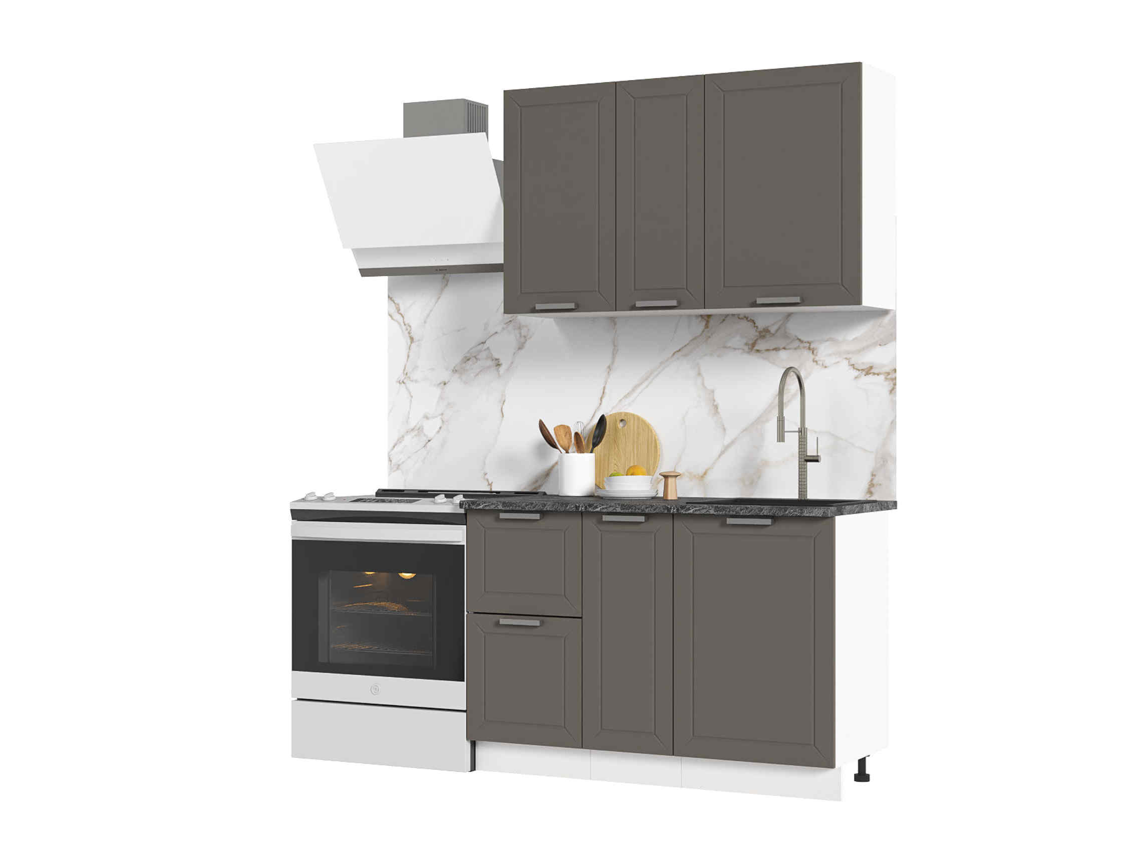 Кухня Альфа 1,2 м холст вулкан (корпус белый, столешница кастилло темный)