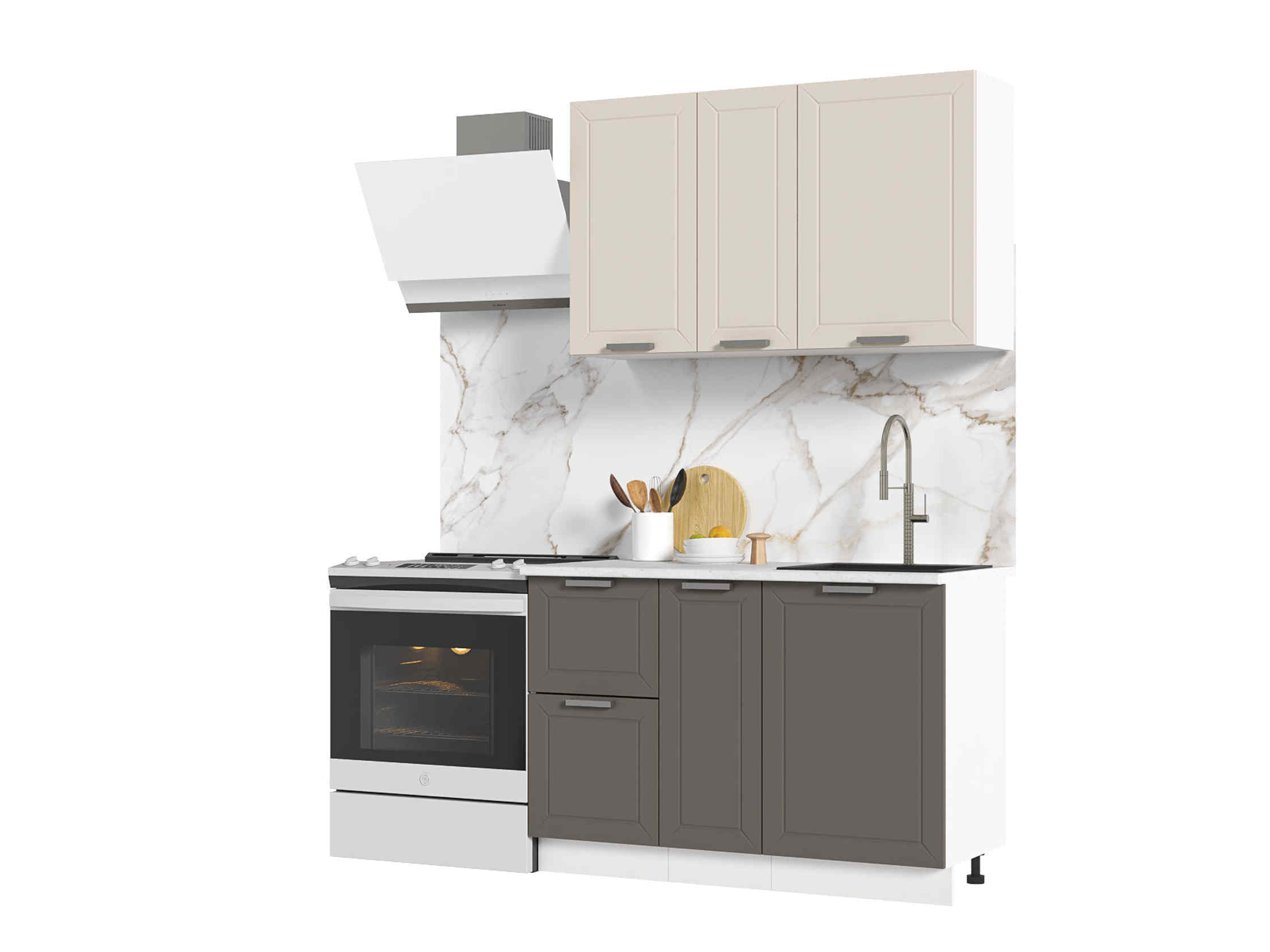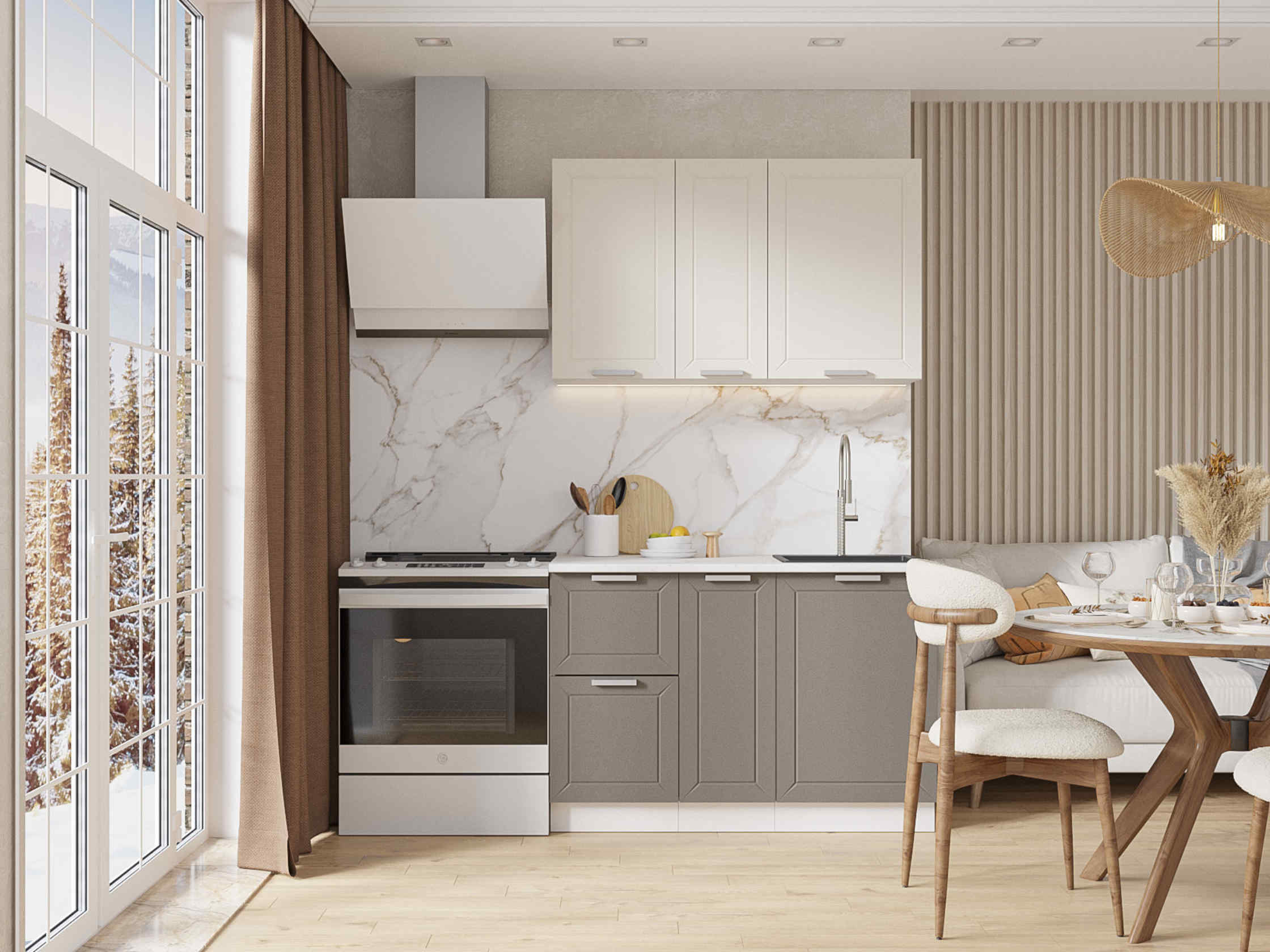 Кухня Альфа 1,2 м комби верх белый, низ вулкан (корпус белый, столешница мрамор лацио)