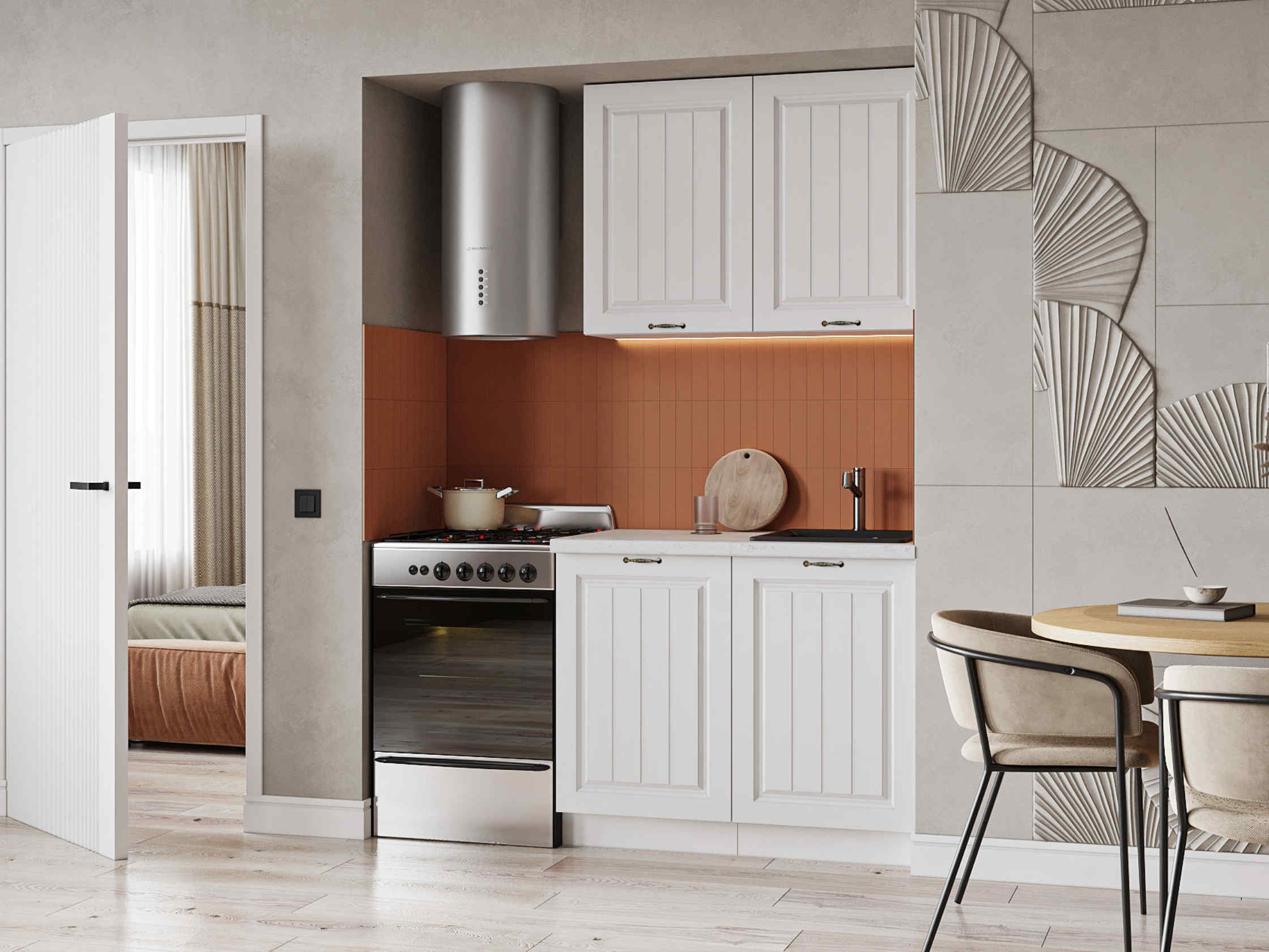 Кухня Мария 1 м белый/белый (столешница мрамор лацио белый)