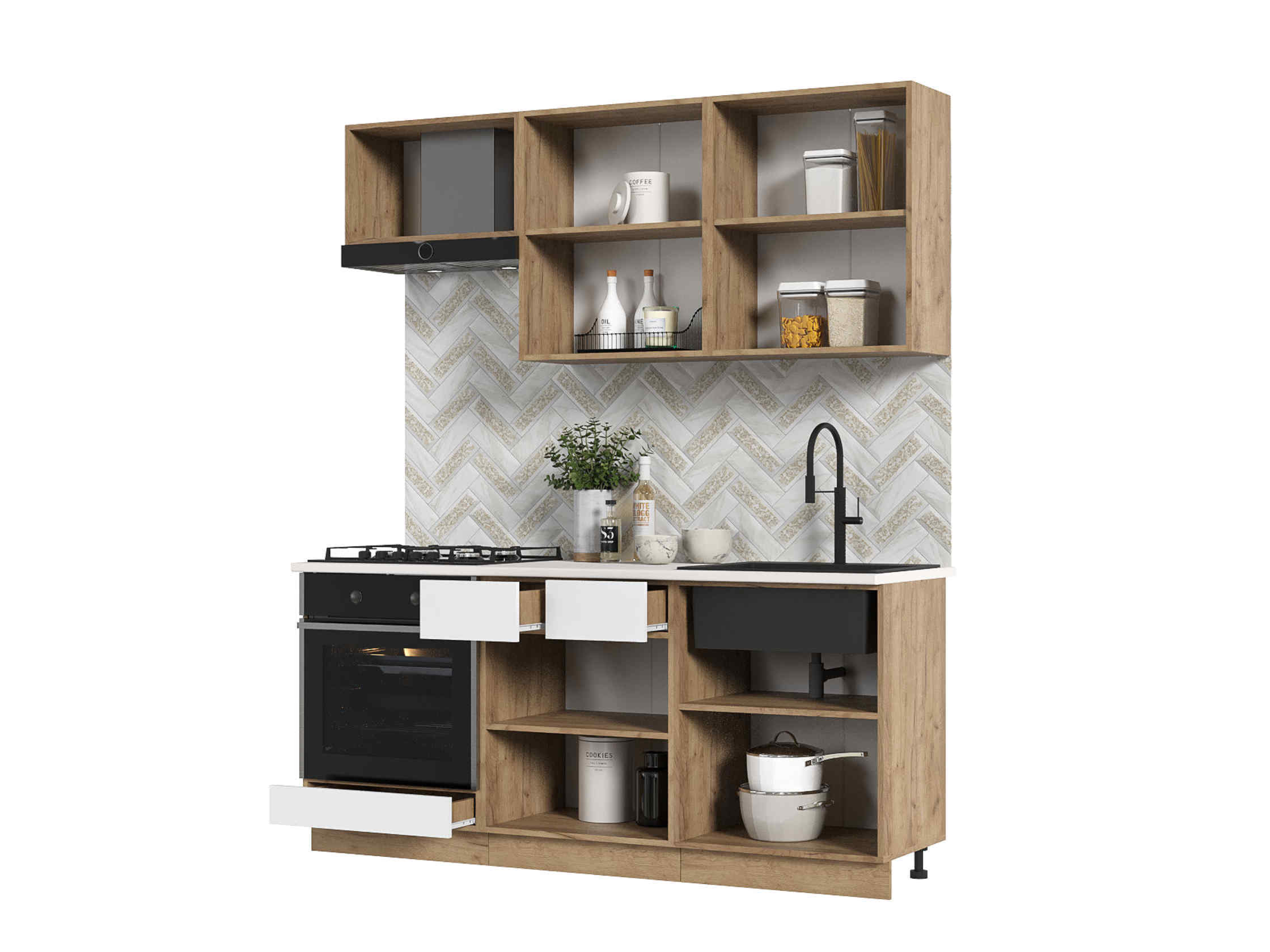 Кухня Мария 1,8 м дуб крафт золото/белый (столешница дуб вотан)