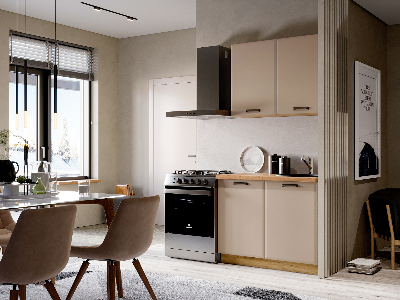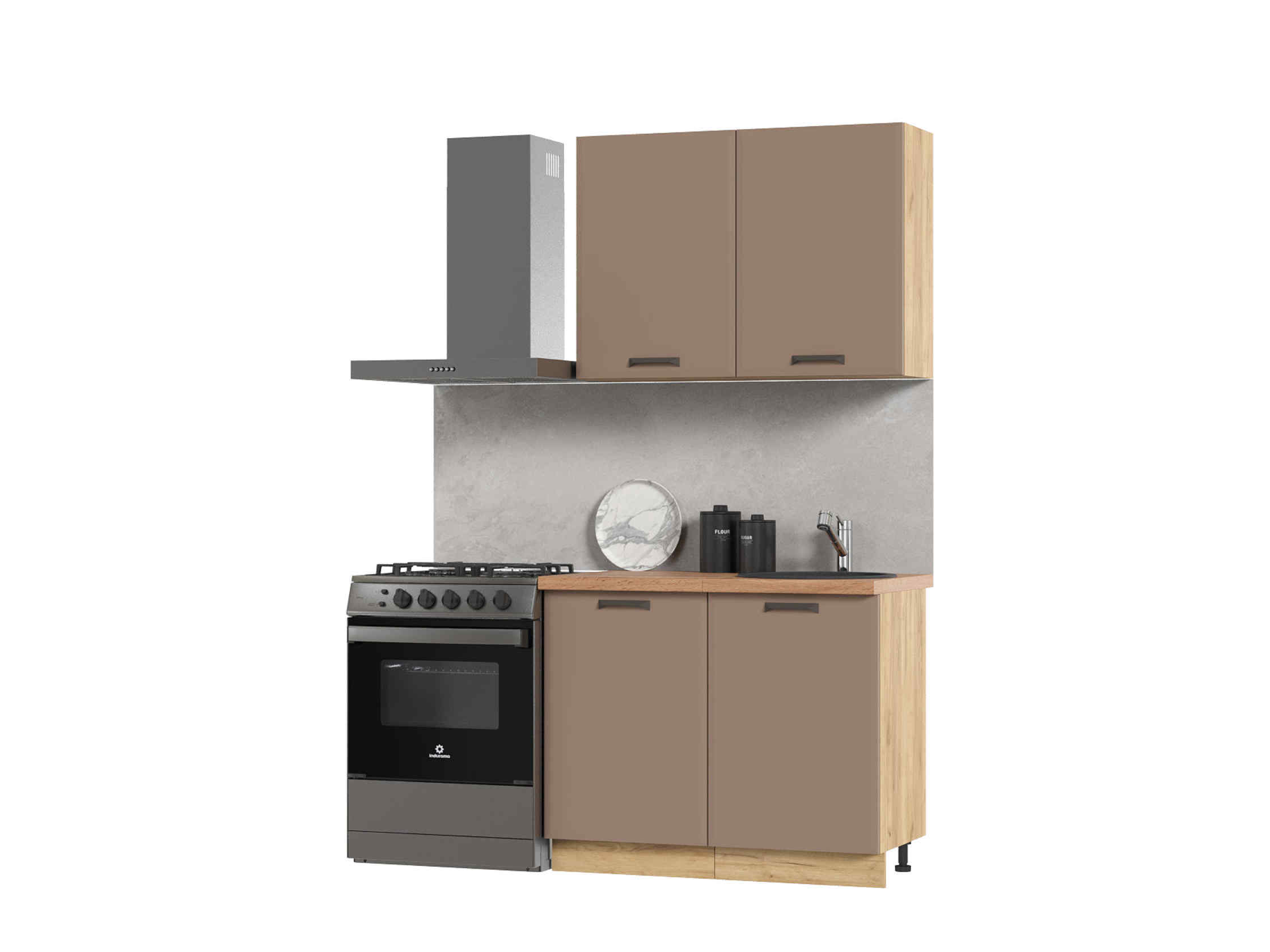 Кухня Призма 1 м дуб крафт золото/мокко суперматовый (столешница -дуб вотан)