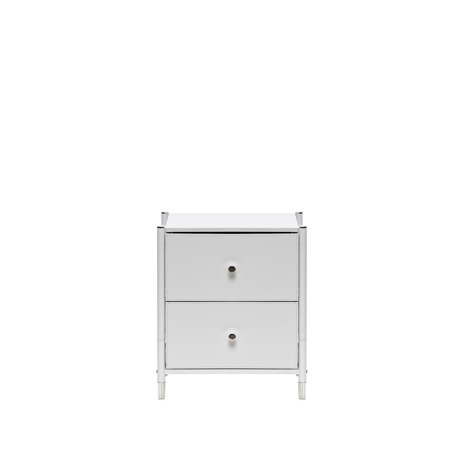 Стильная тумба произведена из прочных экологичных материалов. Стальная рама и полки из ЛМДФ. Ящики – экокожа, которая легко моется. Металлические ручки-кнопки на выдвижных ящиках дополняют изысканный стиль тумбы и удобны в использовании.