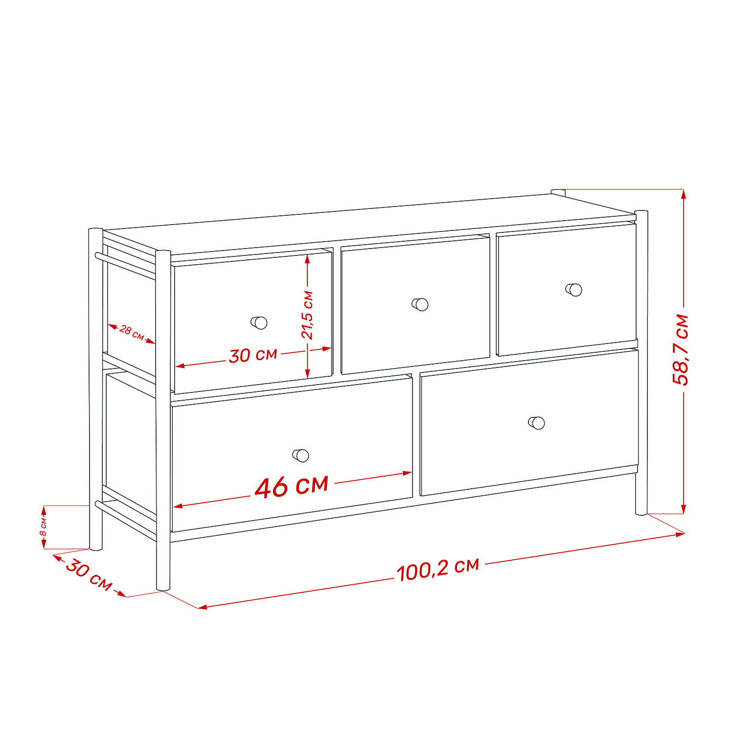 Комод с выдвижными ящиками Leset Хайди – это легкая и компактная конструкция, предназначенная для малогабаритных помещений, при этом обеспечивающая достаточно места для хранения. Габариты широкого комода позволят эффективно использовать ограниченное пространство. А длинная столешница, выдерживающая нагрузку в 30 кг, станет местом для размещения телевизора и интерьерного декора. Произведен из прочных материалов – стальная рама и полка ЛМДФ, имеющая специальную водоотталкивающую пропитку. Такое преимущество, в отличие от столешниц ЛДСП, позволяет использовать данный комод во влажных помещениях (в ванной комнате, на кухне и на балконе). Ящики произведены из матовой экокожи, дно и бока – спанбонд для устойчивости к большим нагрузкам (один ящик выдерживает 10 кг).