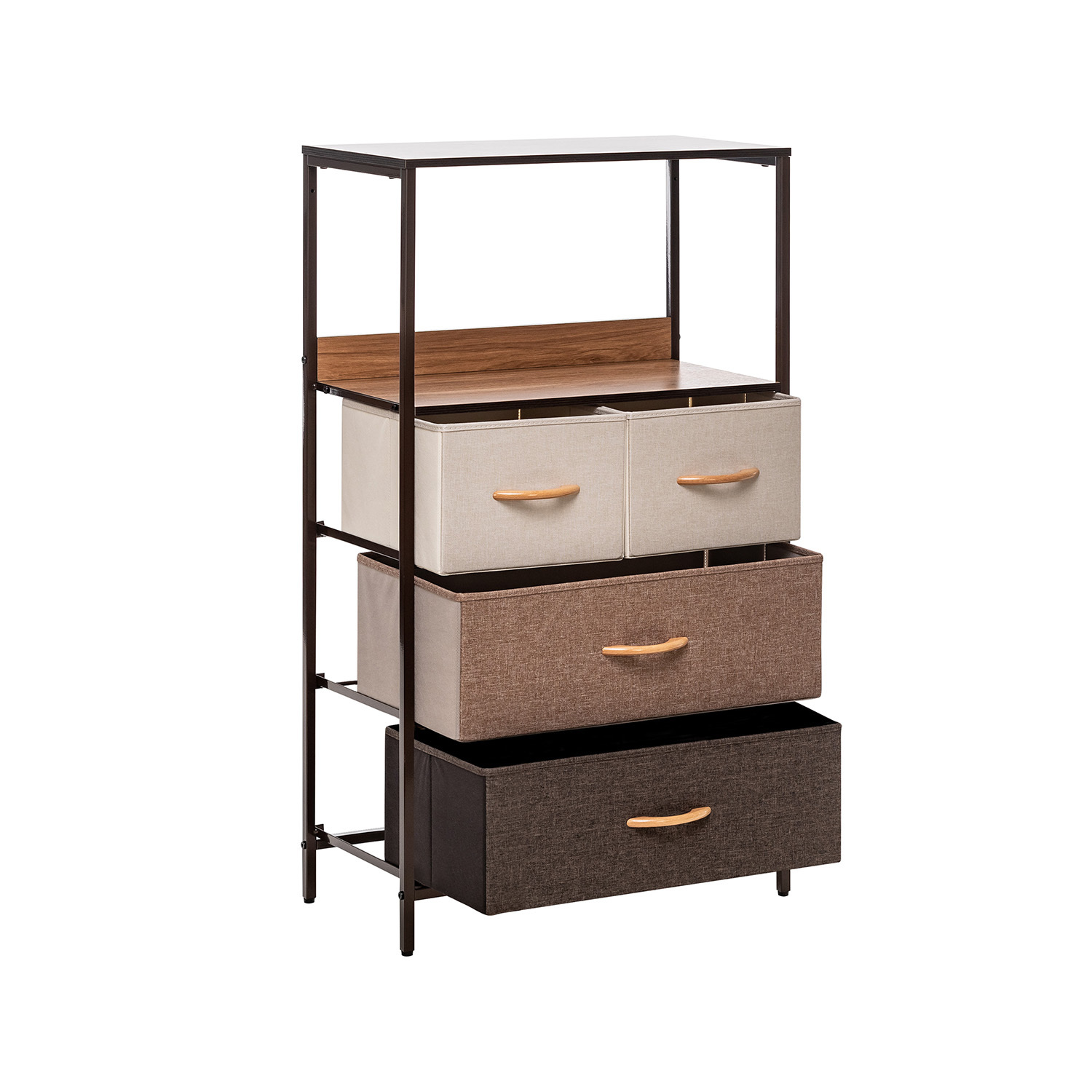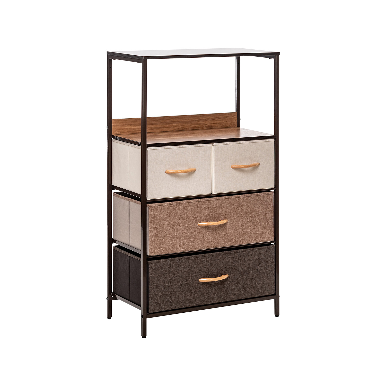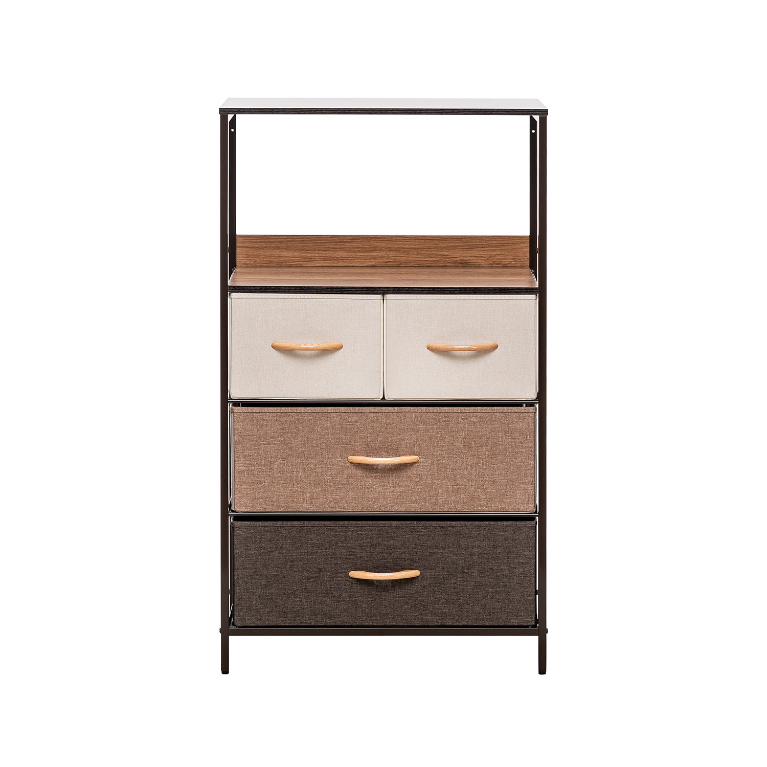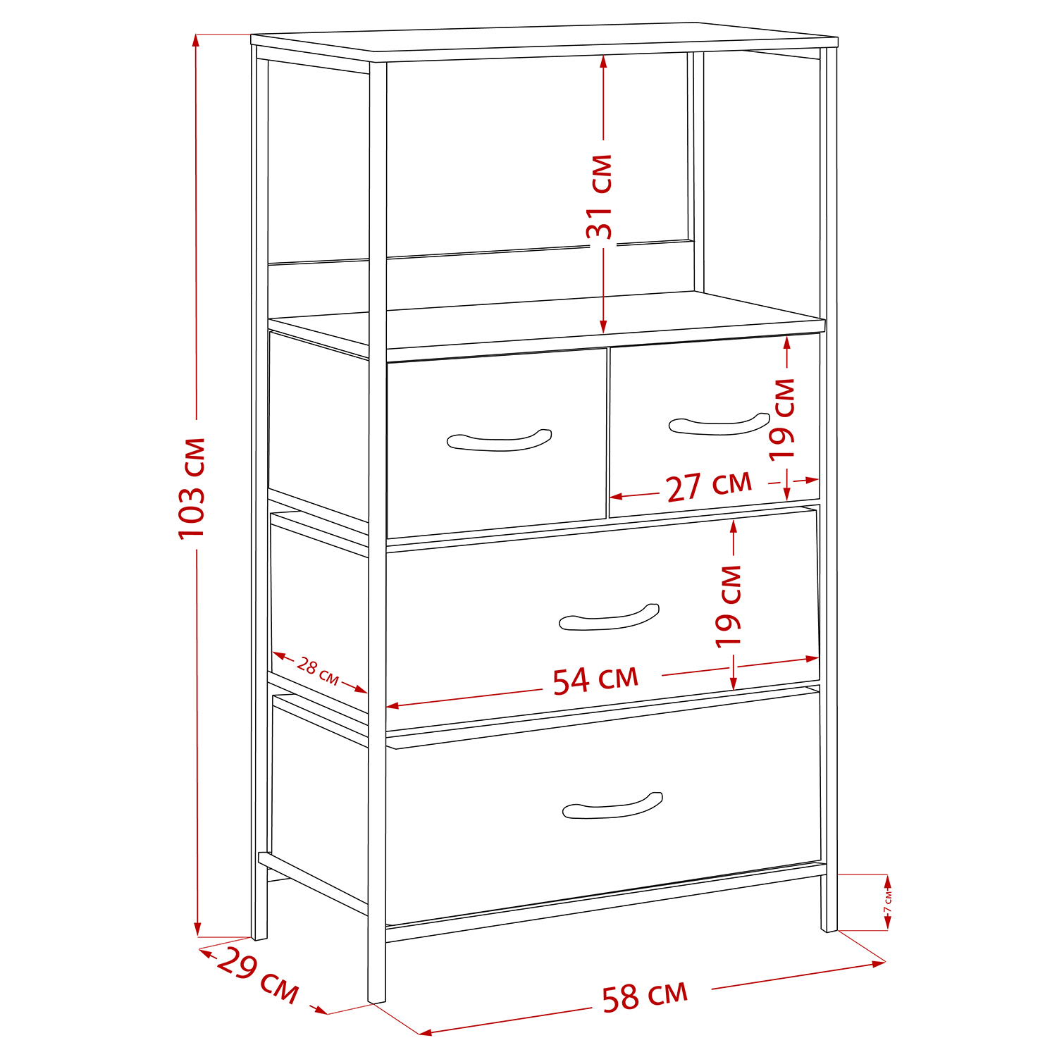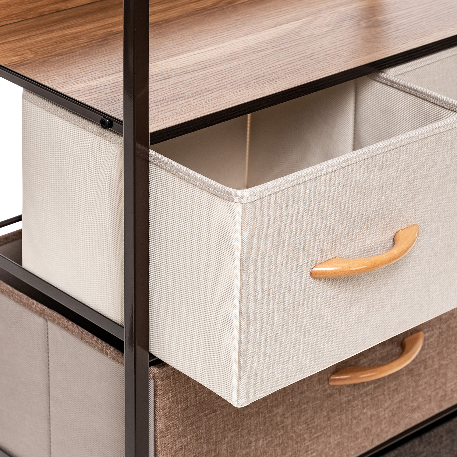 Leset Локи-4 – это узкий комод с 4 ящиками из нетканого материала, оснащенными ручками из дерева. Верхняя планка мебельного комода располагается на некотором расстоянии от крышки ящика, образуя полку. Каркас комода выполнен из стали, а ножки – из прочного пластика, который не царапает половое покрытие.