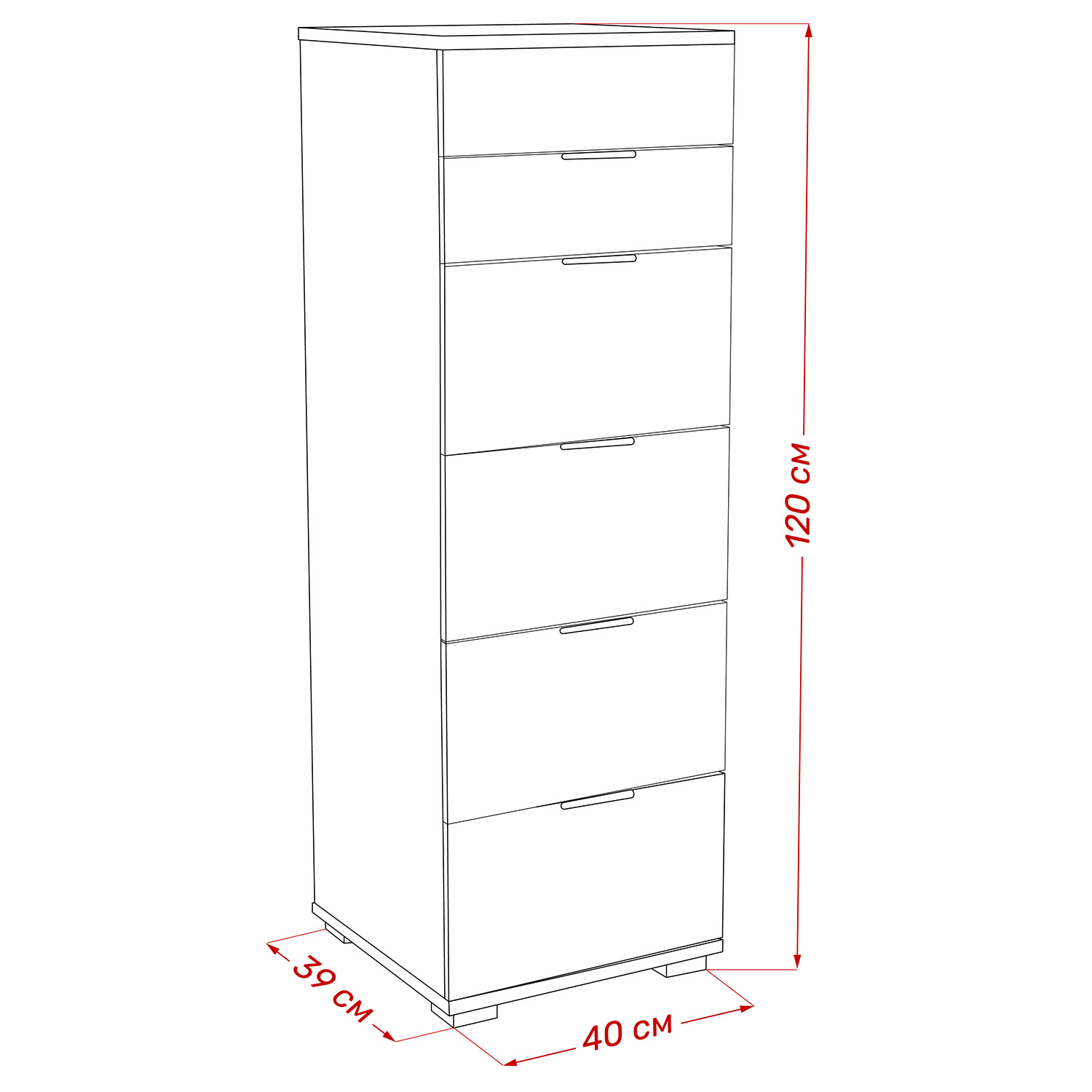 Комод Наоми-6 оснащен пятью выдвижными ящиками и отсеком с откидной крышкой с амортизатором для фиксации, откидная крышка комода оснащена зеркалом. Комод очень удобен, так как не занимает много места и совмещает в себе функции комода и трюмо.
