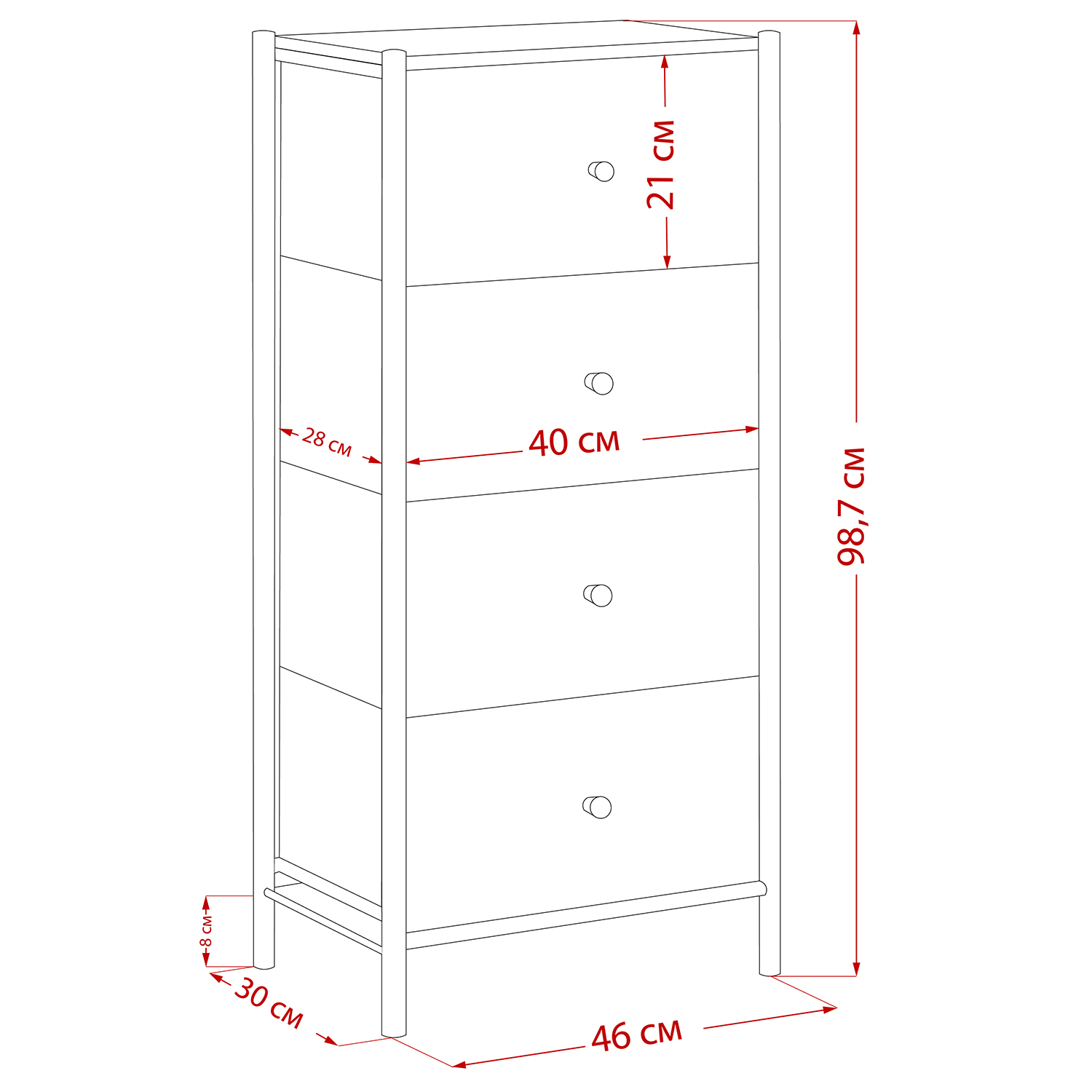 Узкий комод в спальню «Нирита-Хайди 4» – односекционный комод с 4 выдвижными ящиками. Он станет идеальной системой хранения для белья и вещей.
