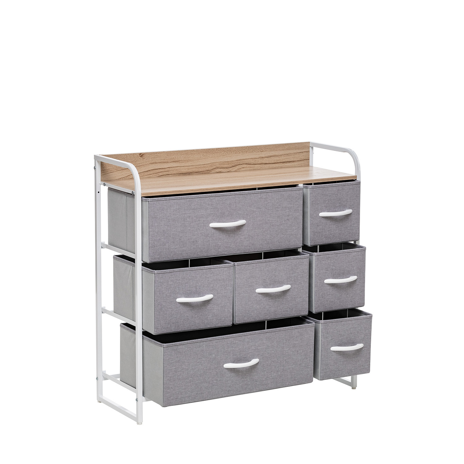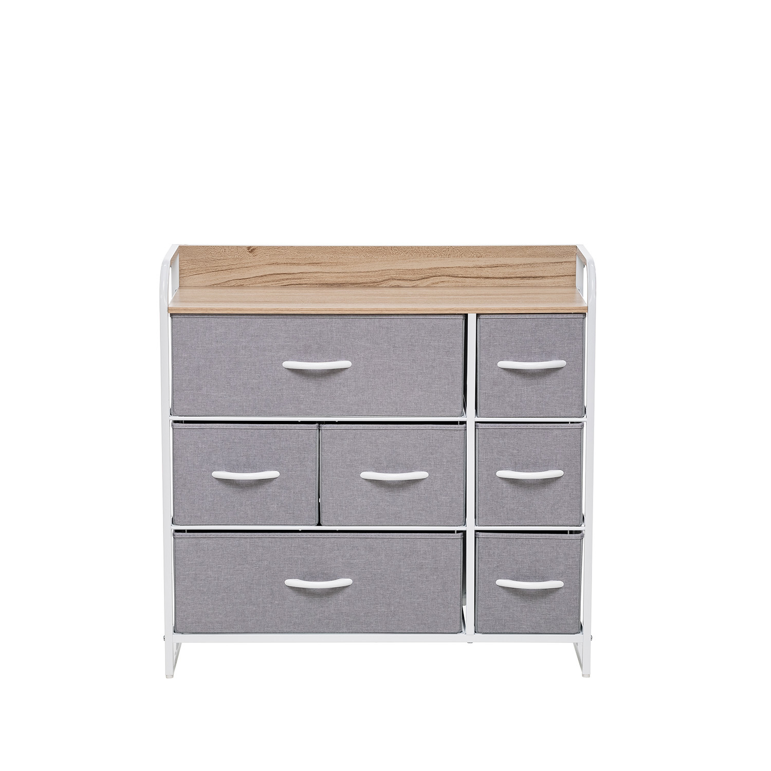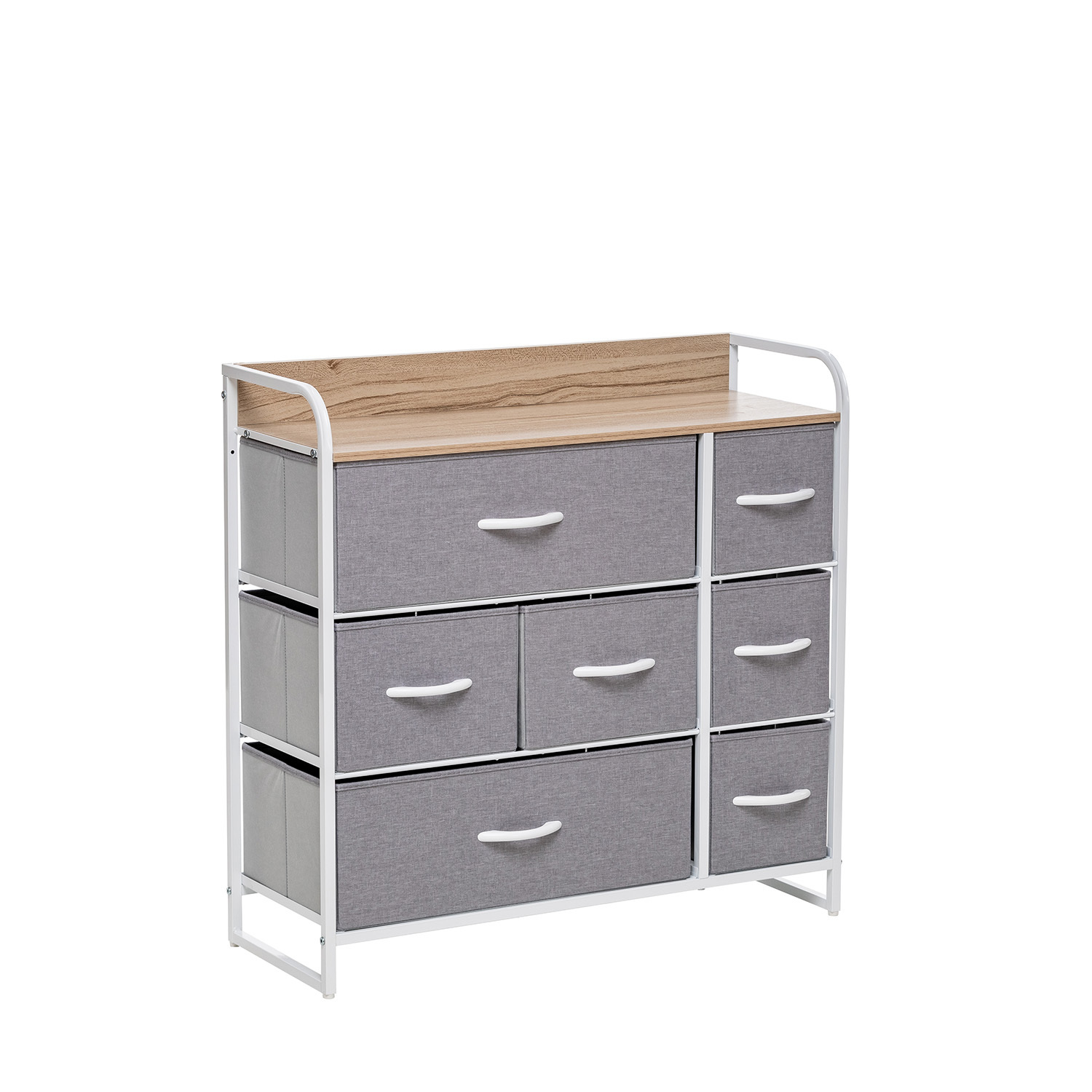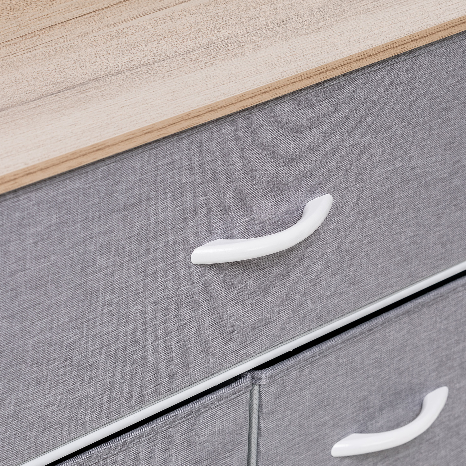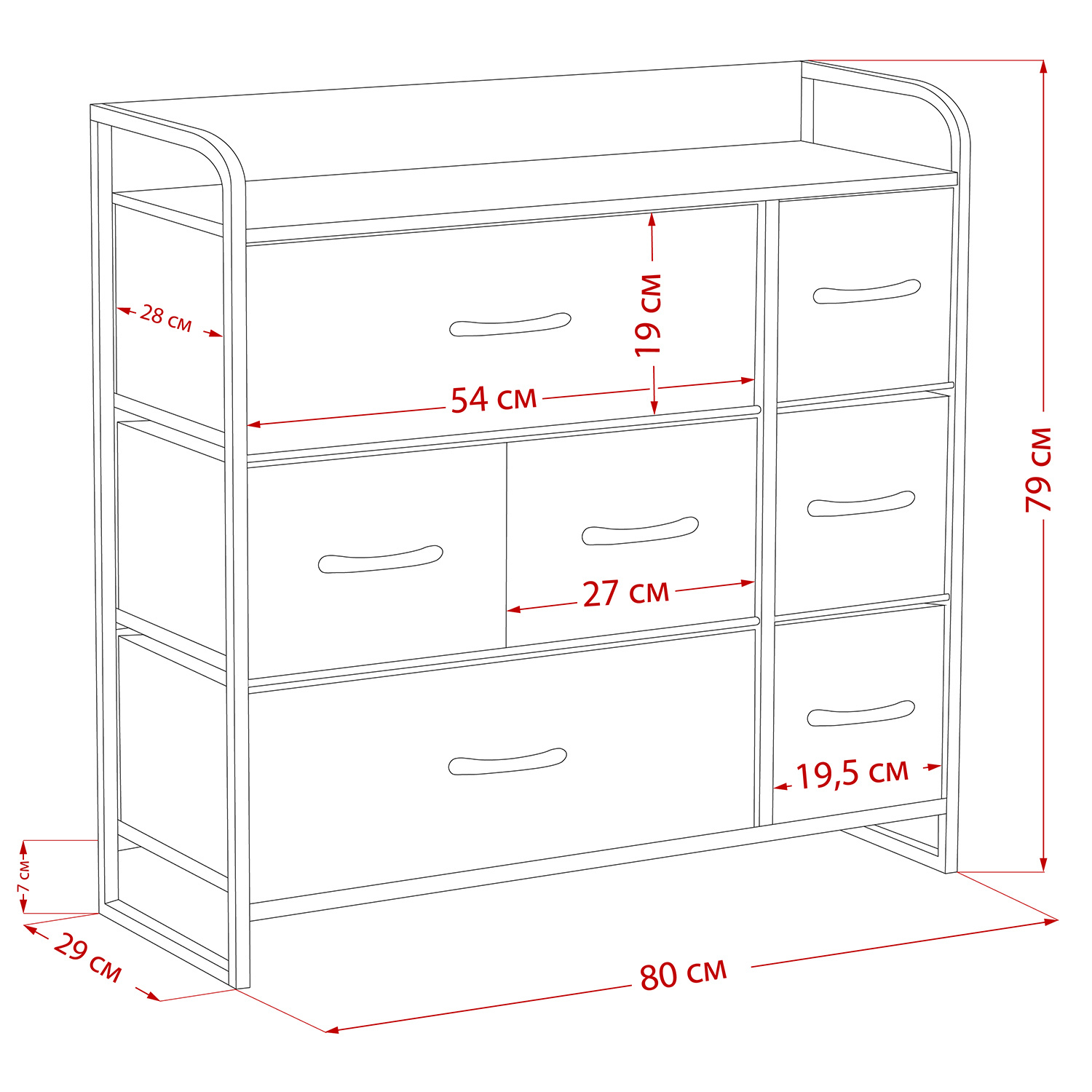 Этот модульный комод получил стальной каркас и надежные пластиковые ножки, которые сберегут пол. Изготовленные из дышащего нетканого материала ящички с деревянными ручками станут удобным хранилищем для разнообразных вещей. Наличие водостойкой верхней панели из МДФ позволит использовать элемент мебели как пеленальный комод или место для экспозиции декоративных элементов.
