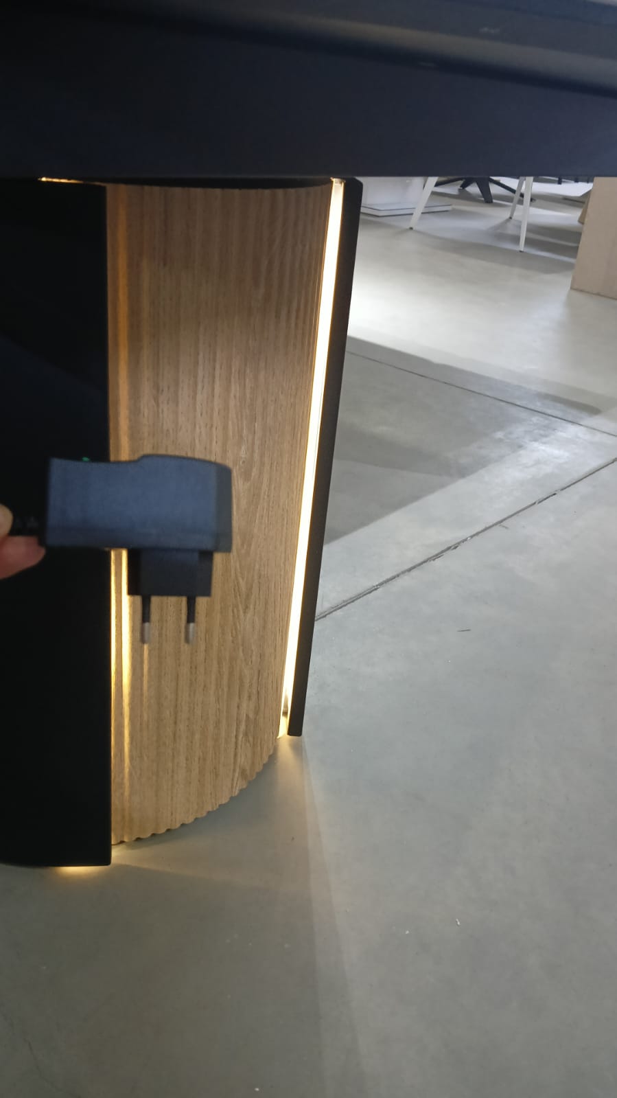- основание стола - металл, цвет - черный+ МДФ в пленке в цвете Дуб Американский, встроенная подсветка с аккумулятором и зарядкой, включается пультом;