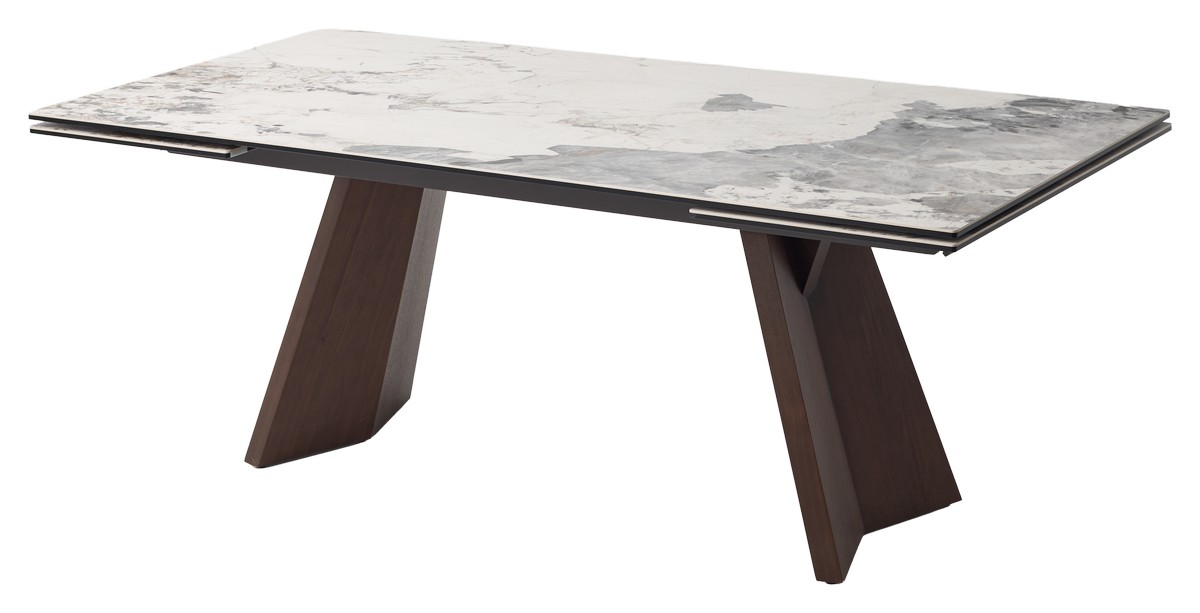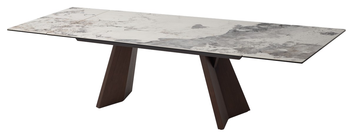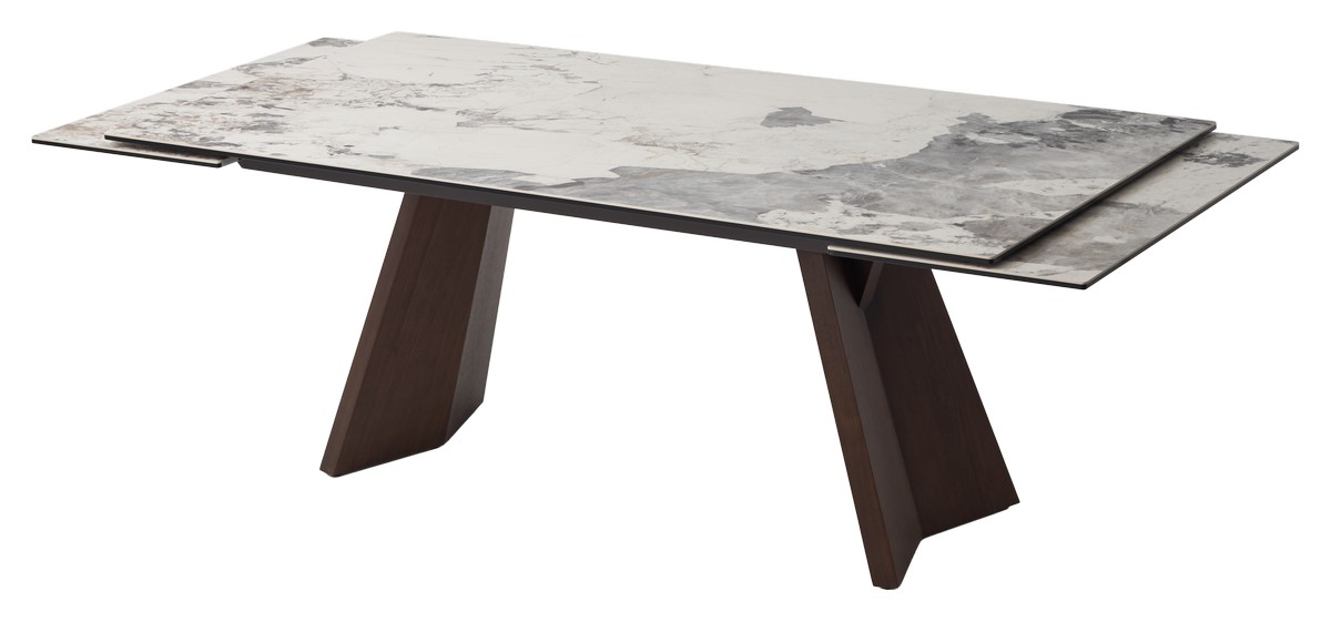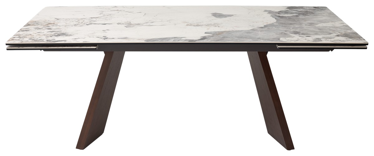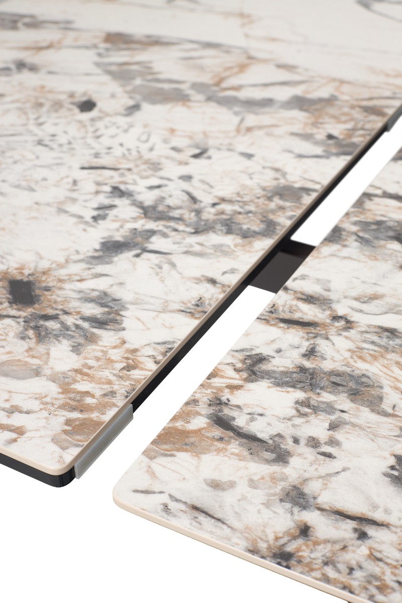 - двухсторонняя торцевая система раскладывания, две независимые вставки по 50 см позволяют увеличить длину столешницы до 250 или 300 см при необходимости;