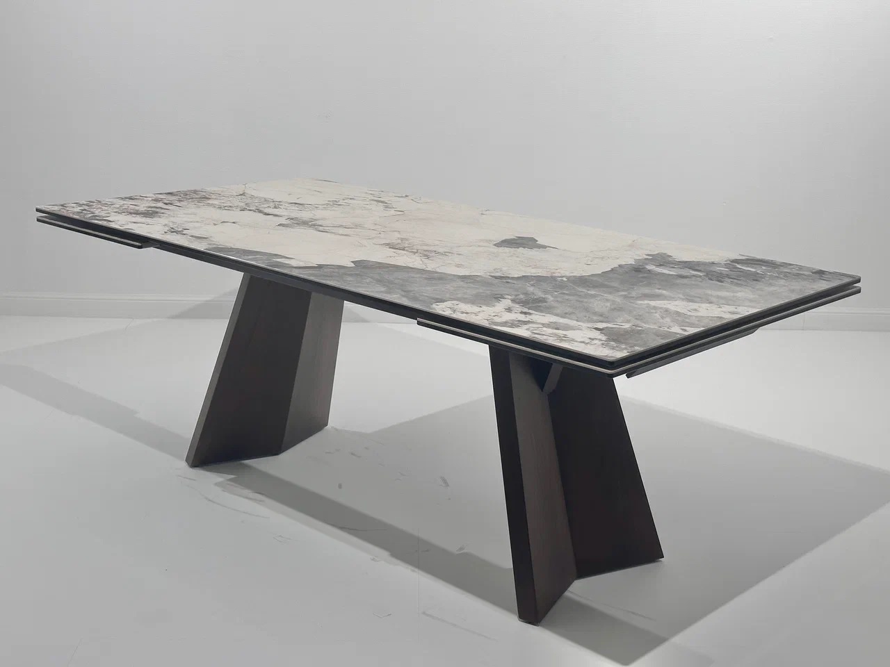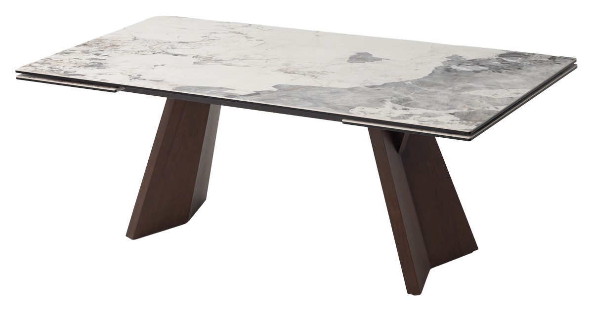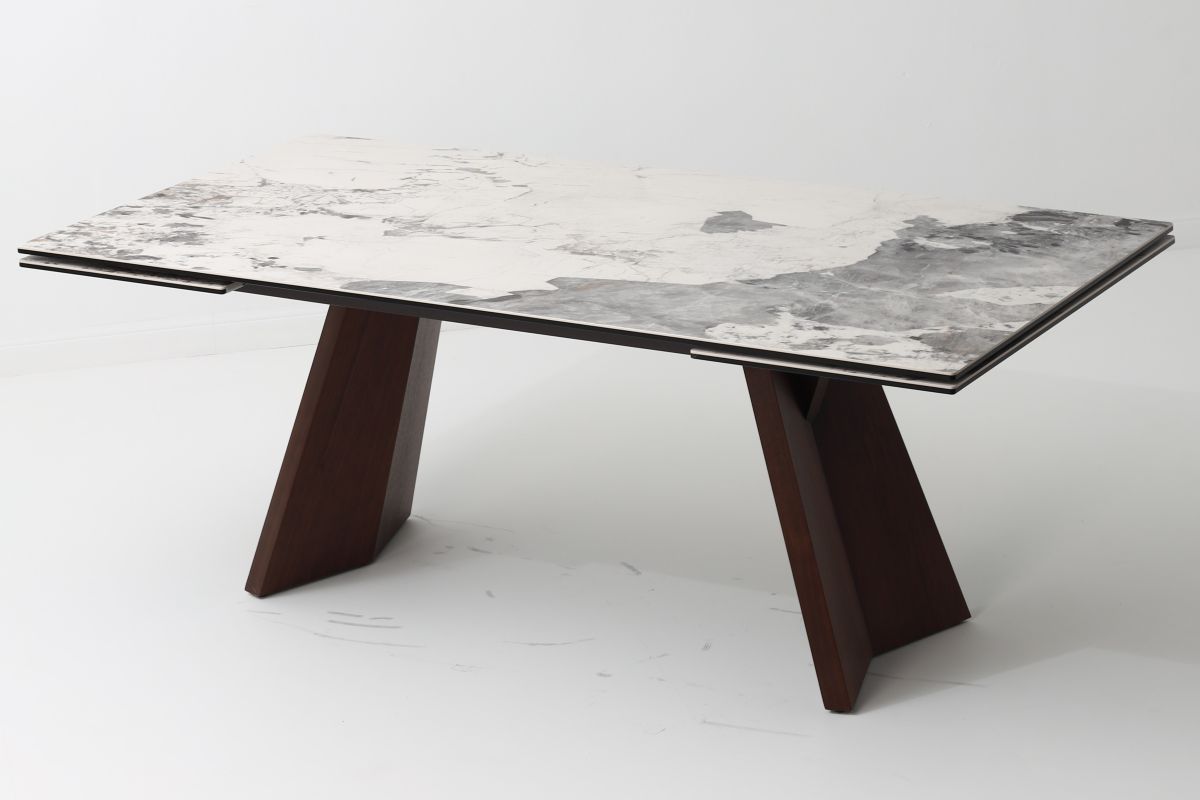 - двухсторонняя торцевая система раскладывания, две независимые вставки по 50 см позволяют увеличить длину столешницы до 250 или 300 см при необходимости;