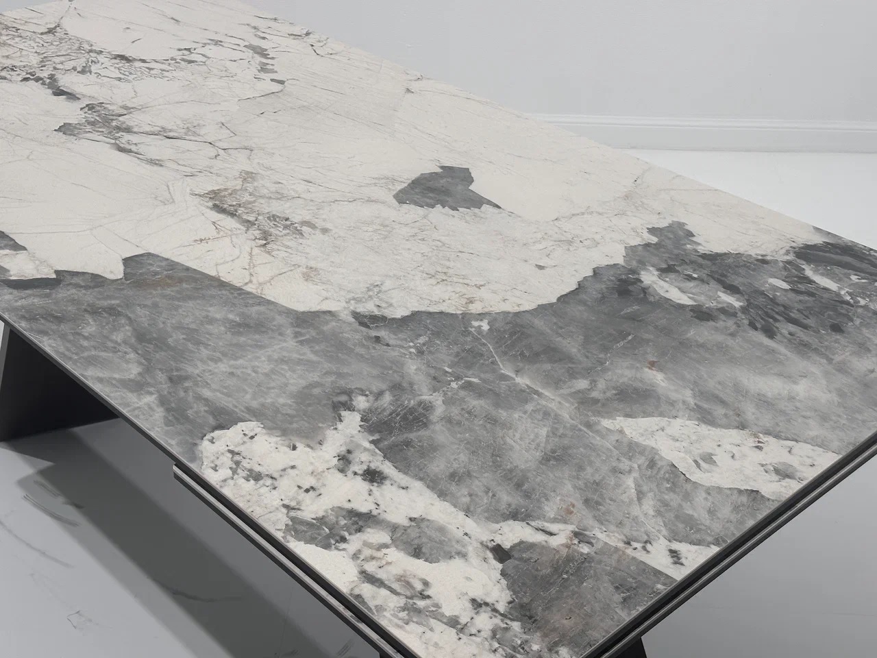 - матовая керамика на стекле, толщина столешницы 14,5 мм (4.5 мм керамика + 10 мм закаленное стекло), не царапается, не впитывает загрязнения, термостойкая;