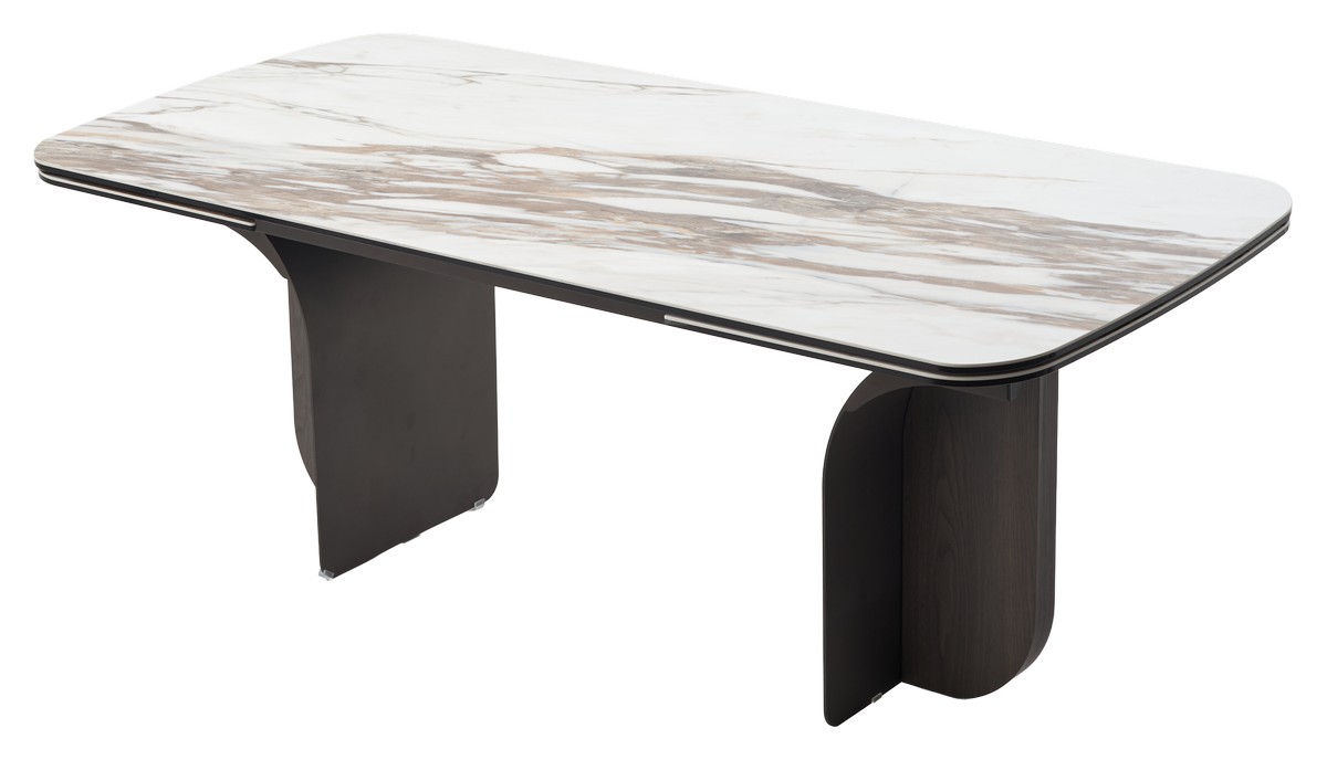 Стол INGERMAN 200 с глянцевой керамической столешницей на металлическом каркасе, комбинированном с деревом