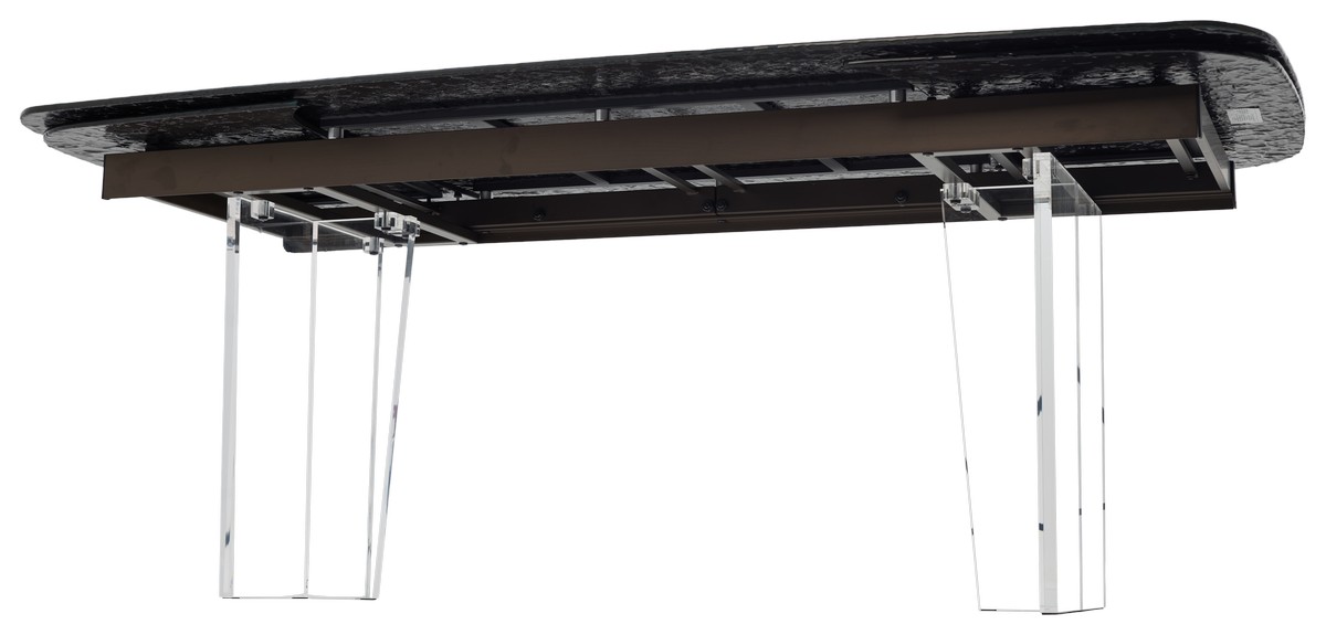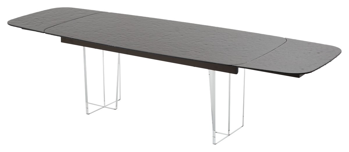 - двухсторонняя торцевая система раскладывания, две независимые вставки по 50 см позволяют увеличить длину столешницы на 250 или 300 см при необходимости;