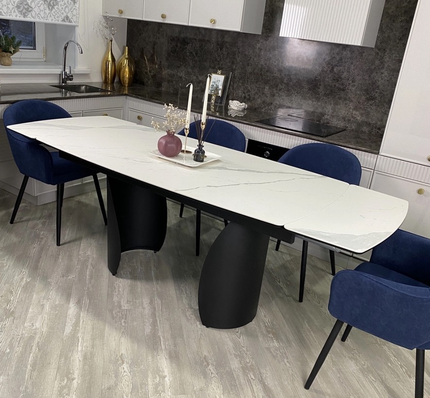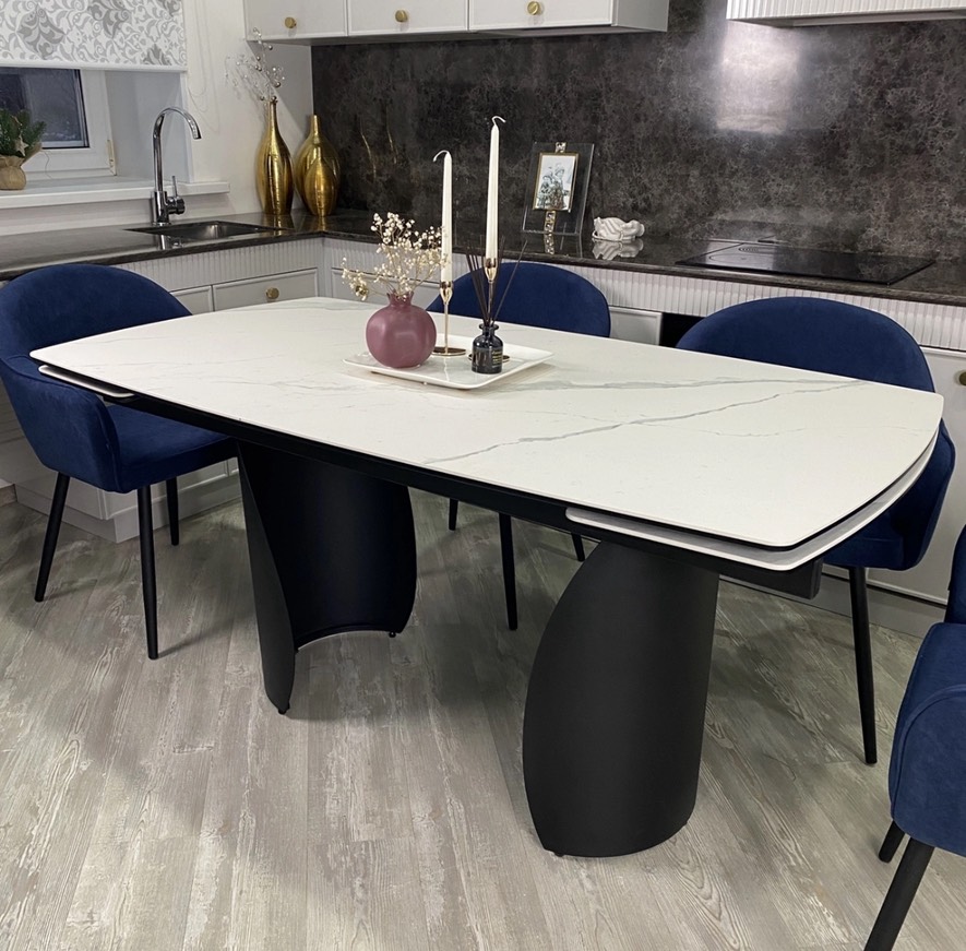 Стол ОЛЬХОН 180 БЕЛЫЙ МРАМОР матовый с керамической столешницей