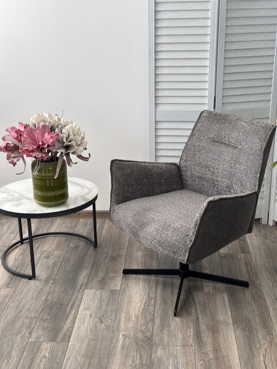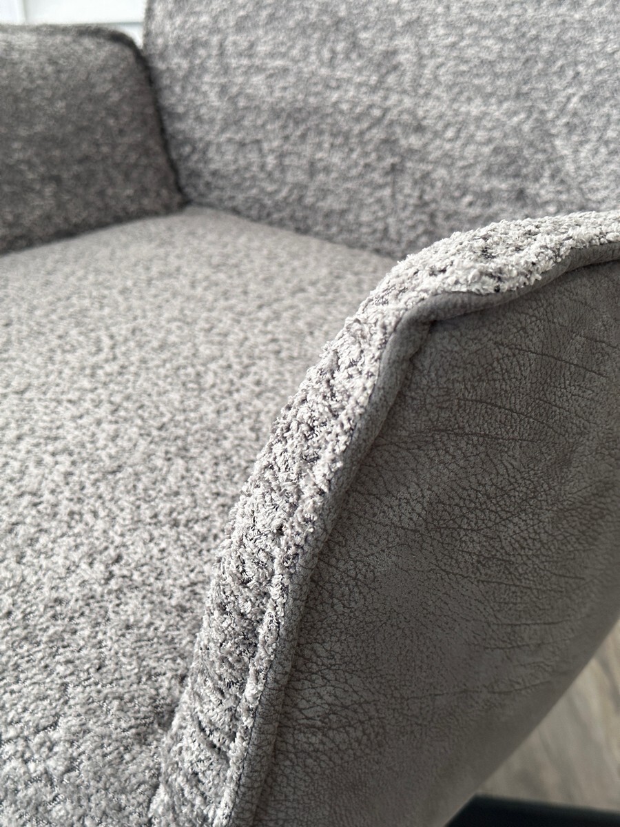 Комбинированная обивка сиденья, лицевая сторона - букле, наружная сторона - ткань.