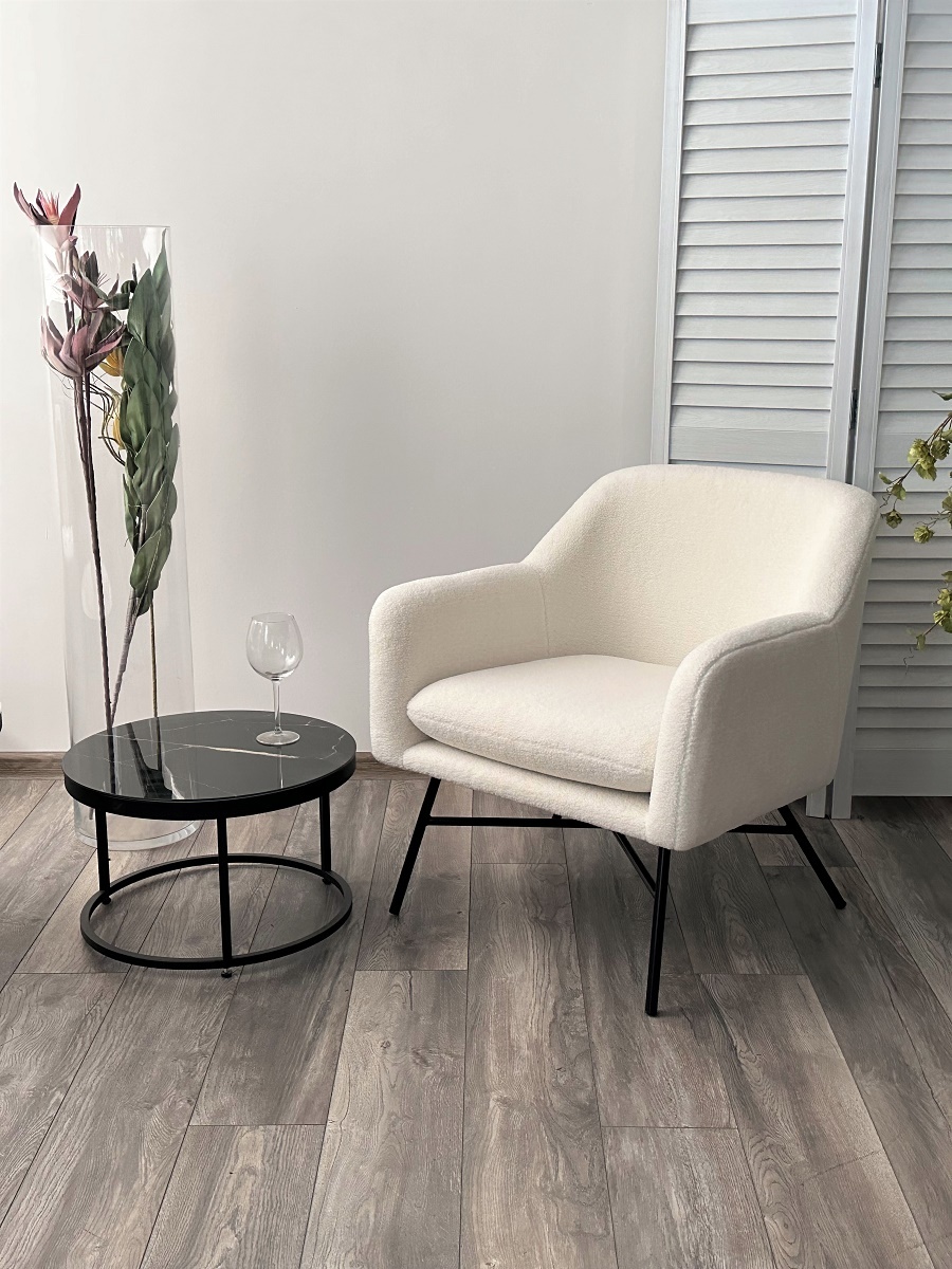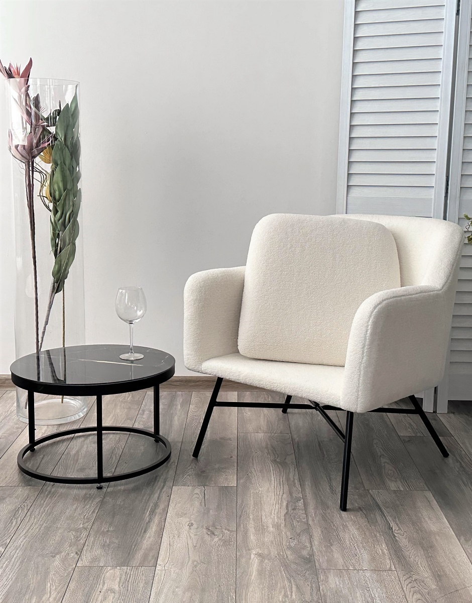 Сиденье обито мягкой тканью, напоминающую шерсть молодого ягненка.