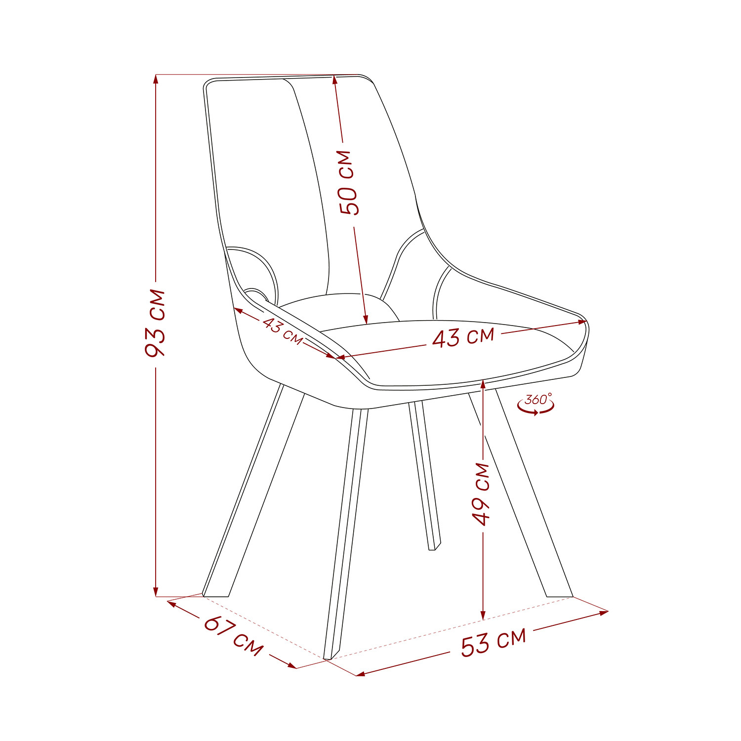 Стул изготовлен из высококачественных материалов, что обеспечивает его прочность, надёжность и элегантность. Основа стула — стальная профильная труба размером 20x40 мм — обеспечивает прочность и долговечность всей конструкции, лёгкость и современный вид. Уникальный поворотный механизм на 360 градусов гарантирует максимальную свободу движений, делая стул незаменимым помощником в работе и общении. Сиденье изготовлено из фанеры и обито мягким пенополиуретаном, покрытым изысканным велюром, который дарит приятные тактильные ощущения. Эта комбинация материалов обеспечивает комфорт, долговечность и лёгкость в уходе.