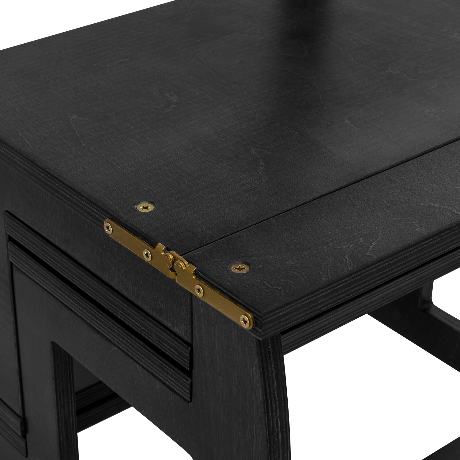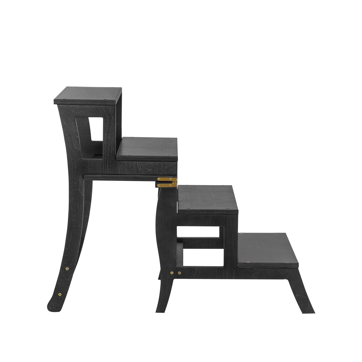 Зачем приобретать несколько предметов мебели, если с ролью каждого из них успешно справляется один. Одним легким движением руки этот стул превращается... в стремянку. Все очень просто — стул-трансформер, изготовленный из сортовой фанеры и покрыт высококачественным итальянским шелковисто-матовым лаком, способен удивить того, кто его еще не видел. Стул способен выдержать нагрузку до 150 кг.