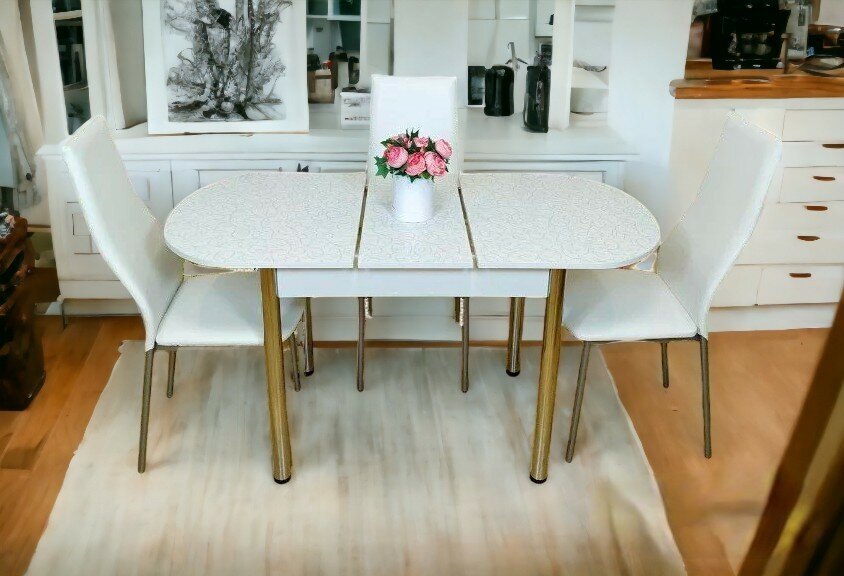 Обеденная группа NGVK Овал Белый и 3 стула Омега станет отличным выбором для тех, кто ценит комфорт, функциональность и стиль в интерьере.