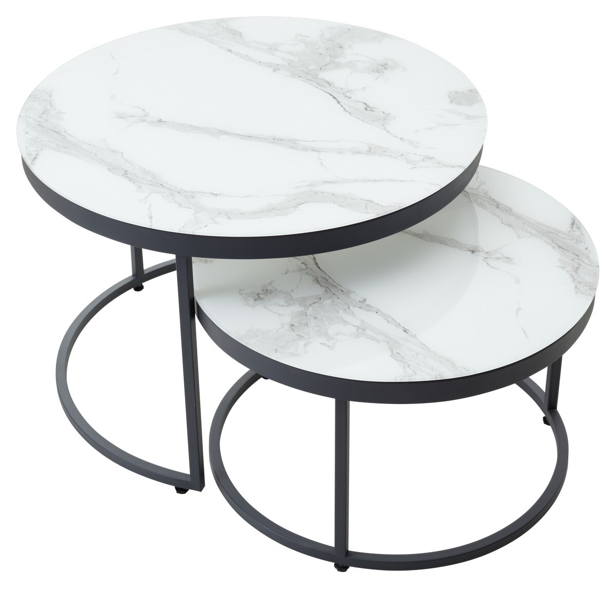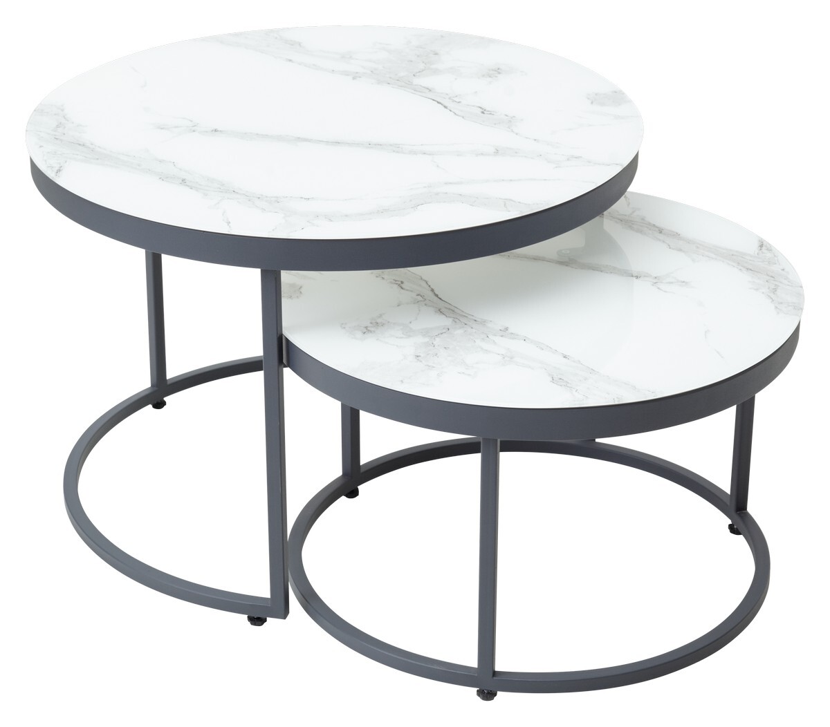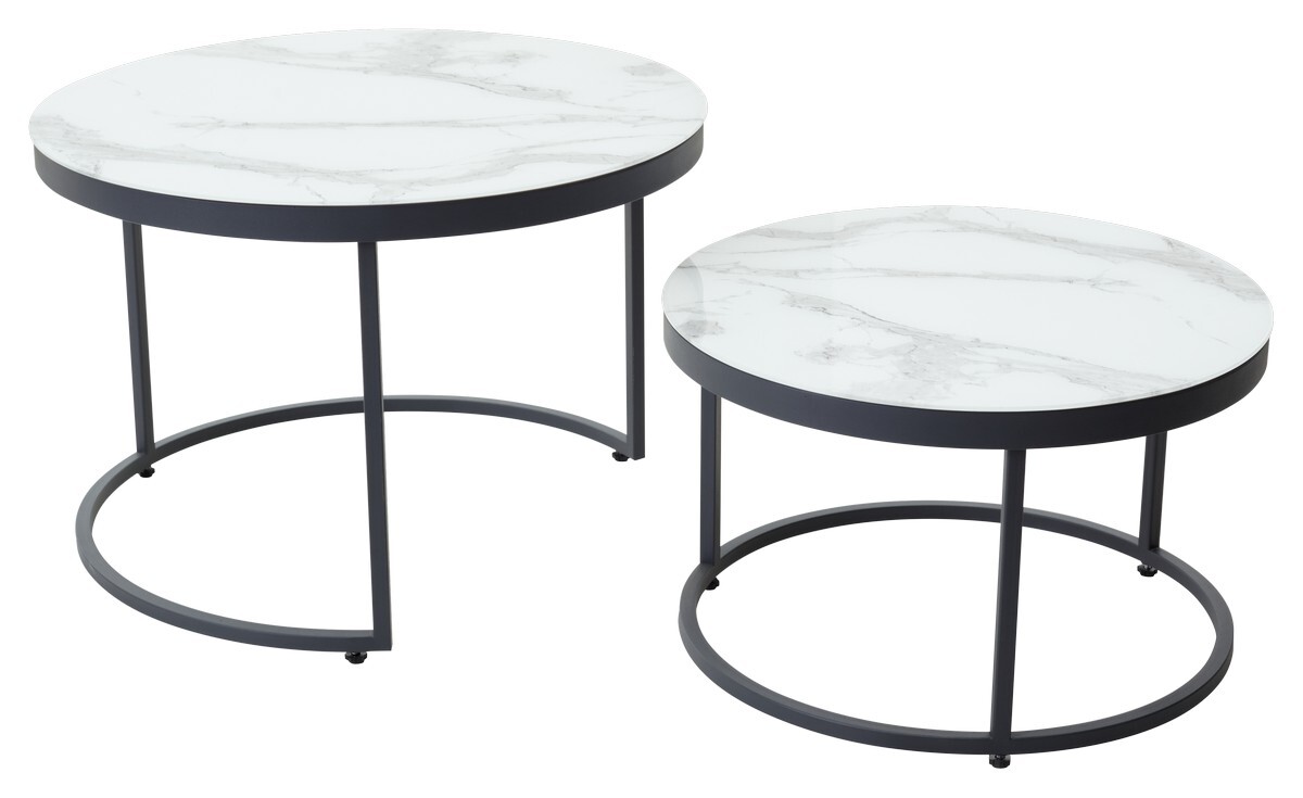 Комплект журнальных столиков Эрвин белый мрамор, стекло/ графит