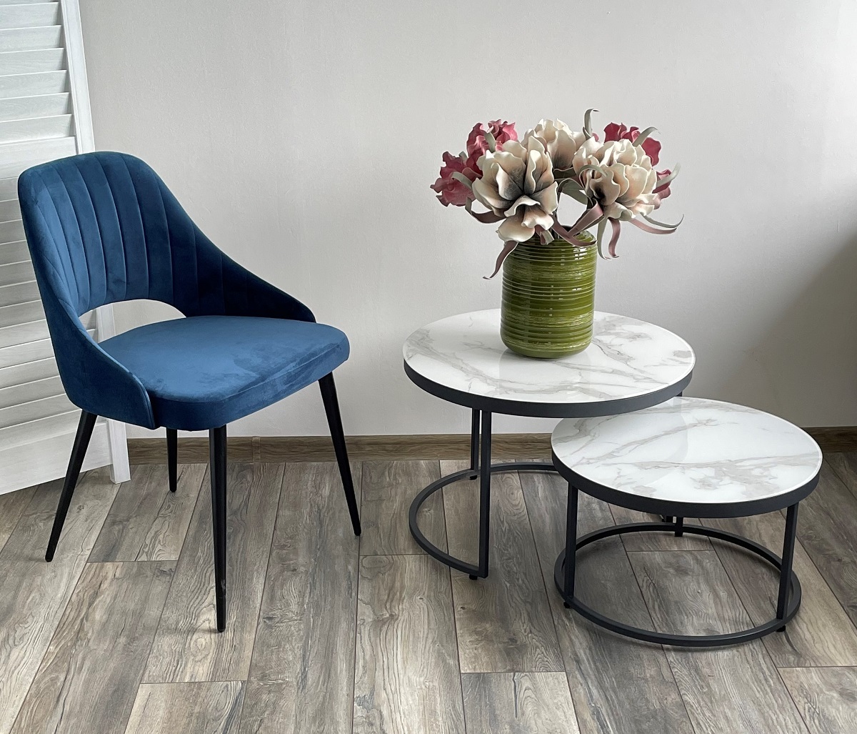 - комплект из 2-х столиков, диаметр 50см/ высота 31см, диаметр 60см/ высота 41см.
